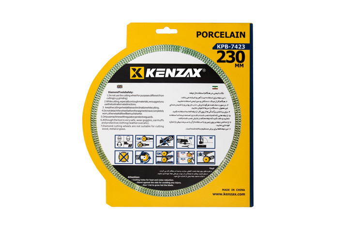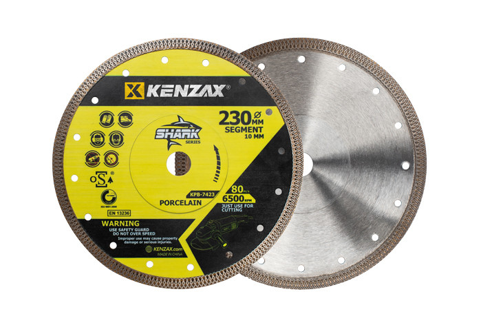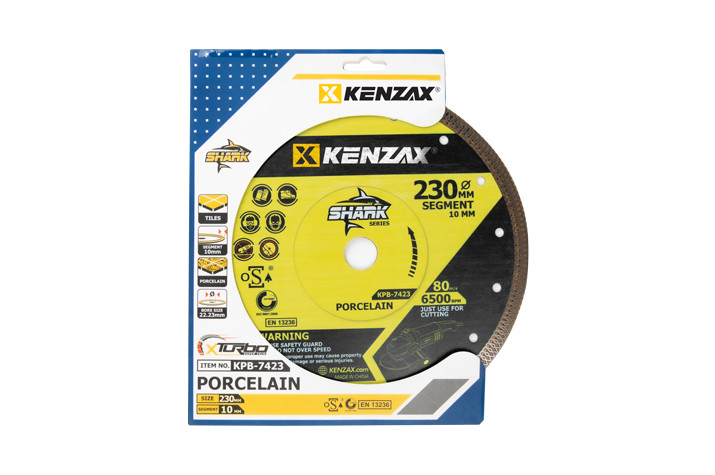 تیغ برش سرامیک مدل KPB-7423 دارای سرعت مطلوب و یکنواخت با کمک فناوری Fast Cut که با تکنولوژی هات پرس (Hot Press) و فشردگی بالا تولید شده است می باشد. این تیغ برش سرامیک مجهز به تیغ الماسه و راندمان مناسب برای کار های طولانی با برش های یکدست و صاف طراحی شده است.حداکثر سرعت گردش این تیغ سرامیک 6500 دور در دقیقه و سرعت قابل تحمل این تیغ سرامیک بر ۸۰ متر بر ثانیه تعریف شده است. پرسلان بر توربو مدل KPB-7423 دارای قطر 230 میلی متر با عرض سگمنت 10 میلی متر، ساخته شده منطبق بر تکنولوژی های روز دنیا از جنس استیل مقاوم در برابر خمیدگی و خوردگی می باشد و بالا ترین کیفیت را هنگام برش های طولانی دارد.