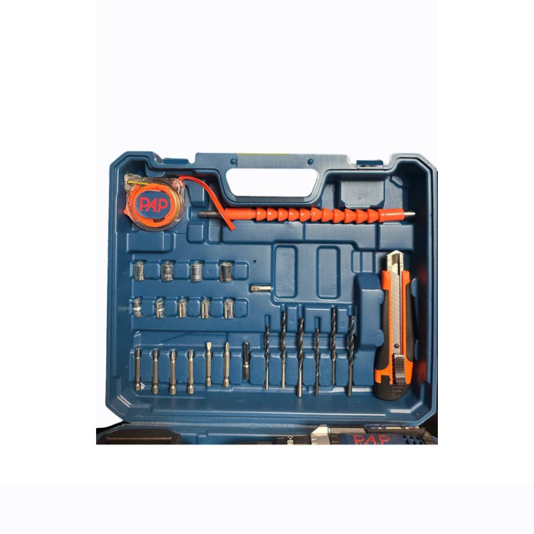 از دیگر اقلام همراه دریل میتوان به : متر - رابط بکس - سری بکس - کاتر - تراز دستی روی دریل - چراغ LED بر روی دستگاه اشاره کرد دارای ترکمتر ۲۵ حالته است
