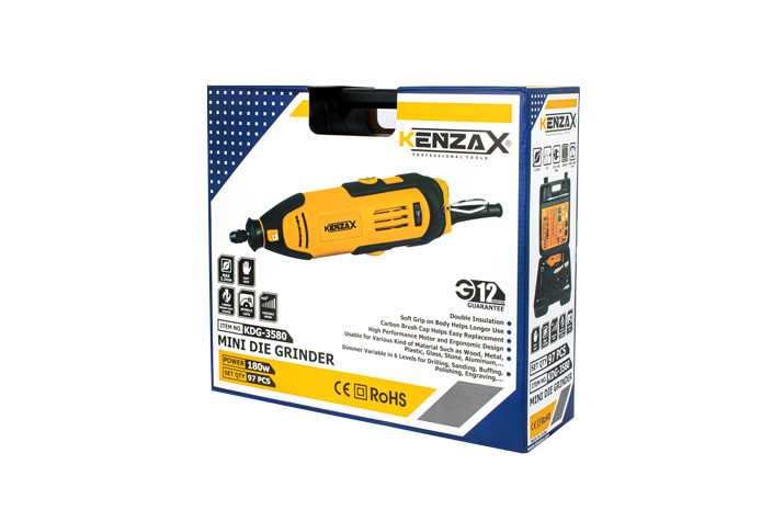 مهم ترین ویژگی های این فرز مینیاتوری 180 وات و 97 پارچه KDG-3580 BMC، کوچکی، وزن سبک، طراحی ارگونومیک و سرعت بالای آن است؛ ویژگی هایی که آن را برای استفاده در شرایط سخت به انتخابی مناسب تبدیل می کند. البته جهت رسیدن به بالاترین سطح ایمنی کار، ضروری است که قبل از شروع، حتما دفترچه راهنما با دقت مطالعه شود. فرز مینیاتوریKDG-3580 ، از بهترین نمونه های نوع خود در بازار به حساب می آید