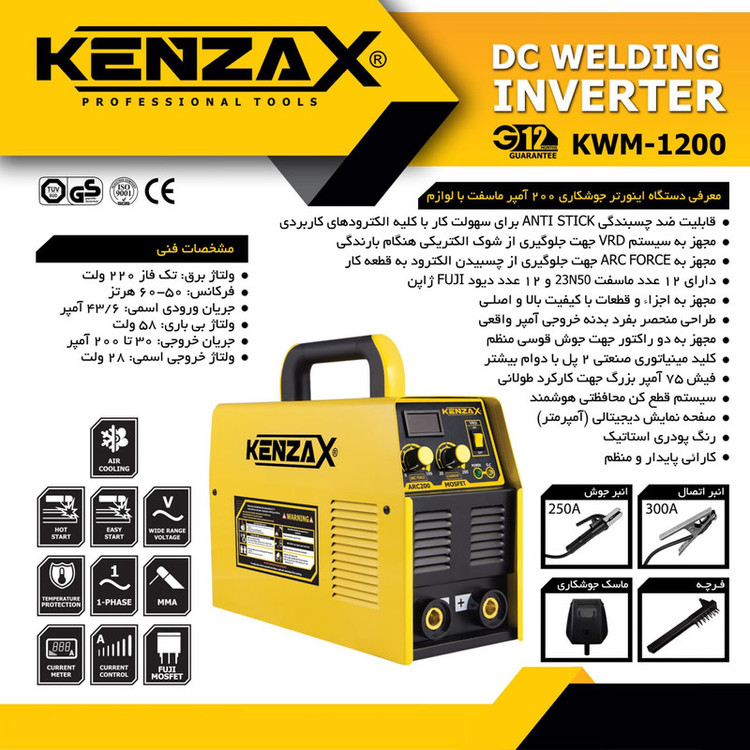 دستگاه اینورتر جوشکاری 200 آمپر کنزاکس مدل KWM-1200