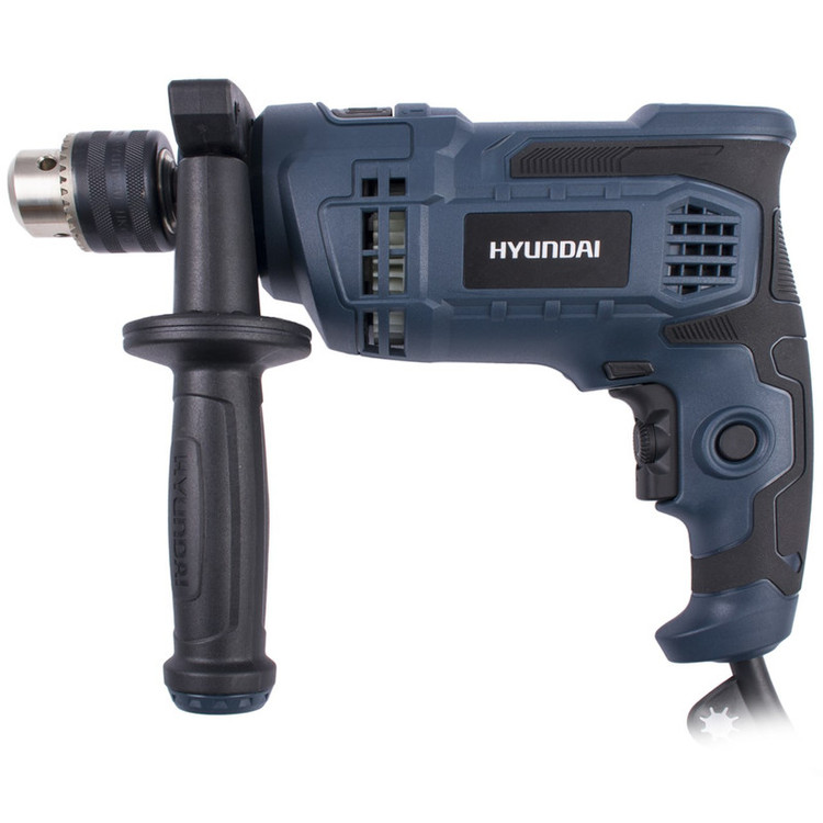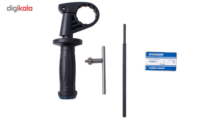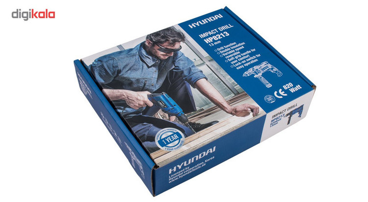 اگر قصد تهیهی یک دریل چکشی مناسب با قدرتی قابل قبول دارید ، میتوانید از دستگاه فوق استفاده کنید. این دریل از توانی برابر 820 وات برخوردار است و از قابلیت کنترل سرعت گردش سود میبرد . میزان سرعت گردش این دستگاه توسط کلیدی چرخشی که روی شستی قرار دارد تنظیم میشود . بازهی سرعت چرخش این دستگاه 2800-0 دور بر دقیقه است . از دیگر مزایای این دستگاه میتوان به قابلیت چرخش ساعتگرد و پادساعتگرد آن اشاره کرد . سه نظام این دریل چکشی از نوع 13 میلیمتری آچارخور بوده و حداکثر قطر سوراخکاری آن در چوب ، فلز و مصالح به ترتیب برابر 25، 10 و 13 میلیمتر است . با کمک این دستگاه میتوانید با دقت و تسلط بیشتری به کار خود بپردازید که این ویژگی به دلیل وجود دستهی کمکی و قفل سوییچ این دریل حاصل شده است . این دسته قابل تنظیم بوده و از قابلیت چرخش 360 درجه سود میبرد . دستگاه فوق با نام « HP8213 » شناخته میشود و یکی از تولیدات شرکت «هیوندای» (Hyundai) است.