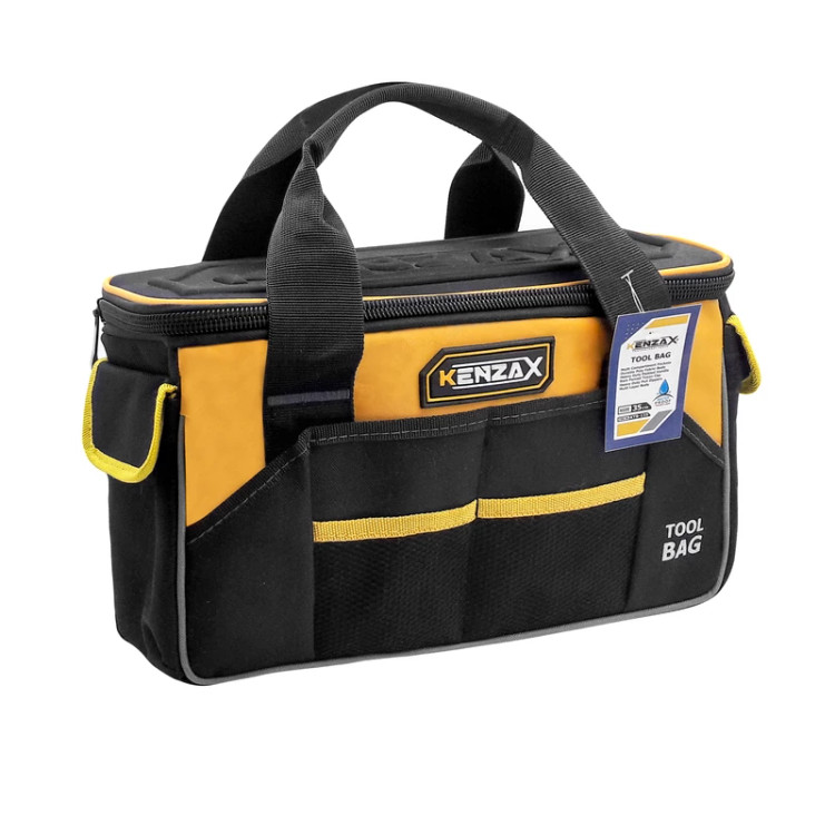 کیف ابزار وسیلهای ضروری جهت حفظ و نگهداری و سازمان دهی ابزار آلات است و در سایزها و تنوعهای مختلفی وجود دارد. کیف ابزار کنزاکس مدل “KIB-135”محصولی جدید و پرطرفدار از مجموعه ابزار آلات کنزاکس است. سایز این کیف ابزار 14 اینچ (35سانت) بوده. با داشتن این کیف ابزار فضای کمتری جهت نگه داری ابزار آلات لازم است و نیز با سازمان دهی ابزار توسط این کیف، دسترسی سریع به ابزار مورد نیاز میسر میشود. این کیف ابزار بسیار جادار و همچنین دارای 11 جیب داخلی و 1 جیب داخلی است. این کیف ابزار از دو رنگ مشکی و زرد و نیز از پارچه دولایه از جنس پلی استر ضد آب ساخته شده تا مستحکم تر و نیز مقاوم تر در مقابل ساییدهگی باشد. همچنین پارچه این کیف حالت ضد آب دارد تا آب از پارچه آن عبور ننماید و ابزار آلات داخل کیف از رطوبت محفوظ بمانند. نقاط تحت فشار این کیف ابزار تقویت شده تا از پاره شدن کیف ابزار (بخصوص هنگام زیاد بودن وزن ابزار داخل کیف ابزار و یا وجور ابزار تیز داخل کیف ابزار) جلوگیری شود. درب کیف مجهز به لایه تکسون لاستیکی با برند برجسته KENZAX جهت تشخبص اصالت محصول است. حجم داخلی 9 لیتر میباشد . برای این محصول زیپ دندانه درشت و روان ، همچنین یک نوار با مغزی پلاستیک فشرده جهت تقویت نفاط تحت فشار در نظر گرفته شده است . همچنین این کیف ابزار قابلیت تحمل وزن تا 15 کیلوگرم را دارا بوده. همچنین دوخت چند لایه این کیف ابزار به استحکام بیشتر این کیف ابزار انجامیده است. این کیف ابزار دارای دسته مقاوم با مغزی پلاستیک فشرده و نوار ریز بافت با مقاومت بالا میباشد . کیف ابزار کنزاکس مدل “KIB-135”دارای 11 جیب خارجی و 1جیب داخلی است تا کیف ابزاری جادار و کاربردی را ارائه نماید. جیب های جانبی این کیف ابزار دارای مهار کننده چسبی میباشند . سایز این کیف ابزار با حجم داخلی 9 لیتر مناسب جهت قرار دادن انواع ابزار میباشد.