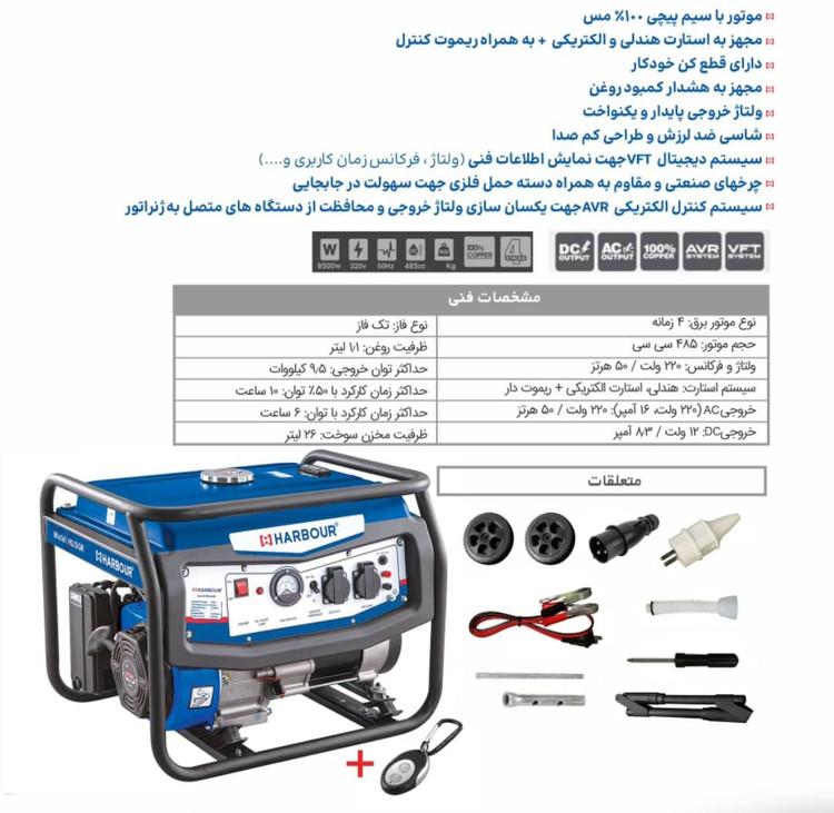 موتور برق 9500 وات بنزینی-استارتی هاربر مدل H9.5GR (چرخدار+ریموتدار)