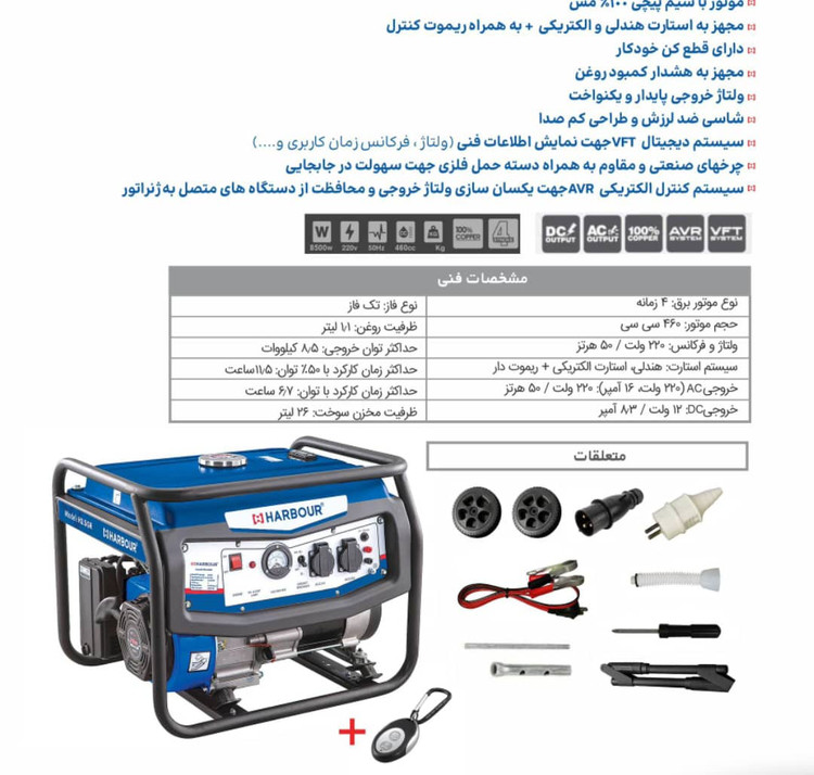 موتور برق 8500 وات بنزینی-استارتی هاربر مدل H8.5GR (چرخدار+ریموتدار)